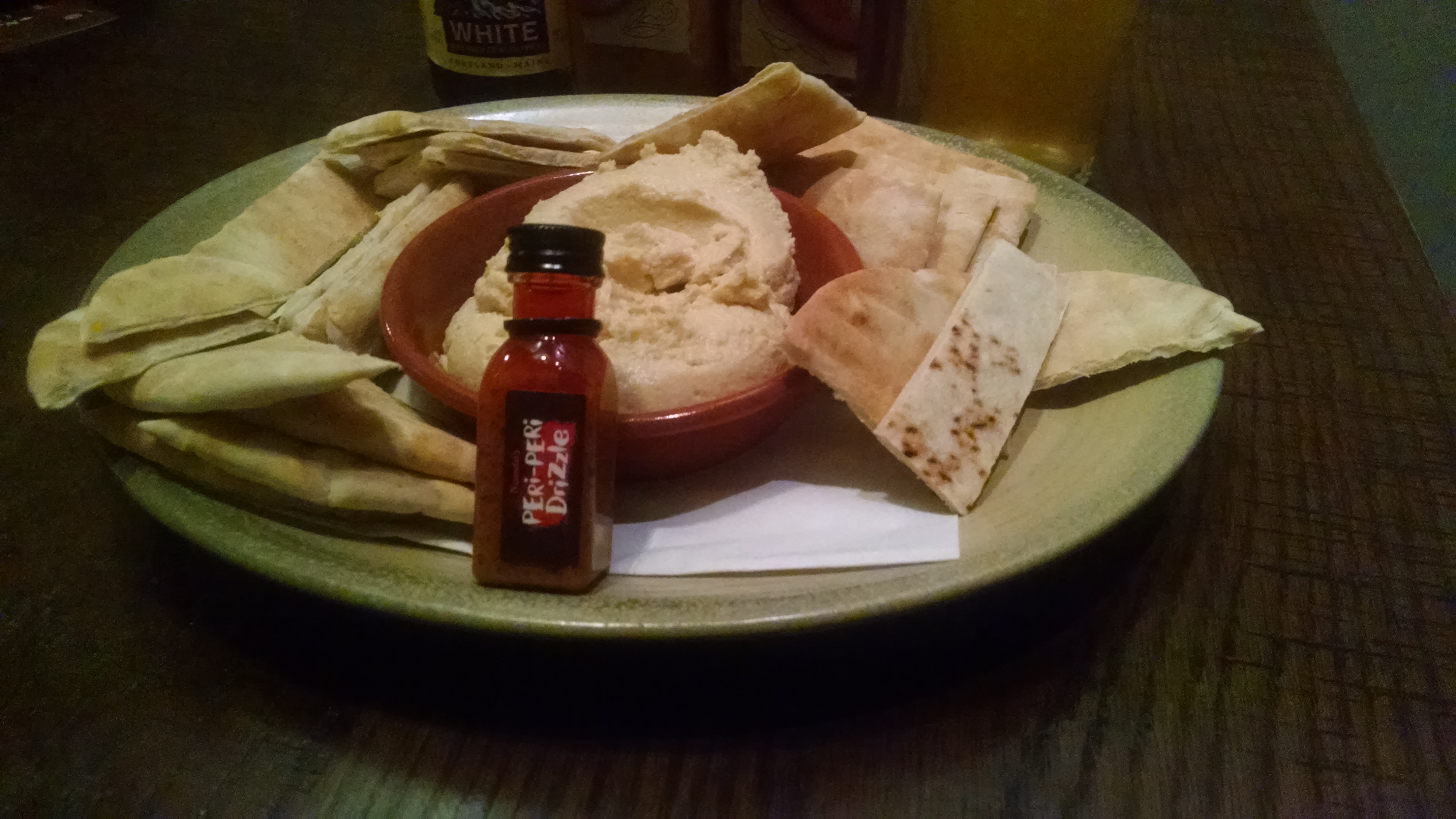 Nando’s Peri-Peri was founded in the 1980s in South Africa, and the concept has spread in the years since to the United States. The restaurant has set up shop in the Washington, DC, Baltimore, MD, and Chicago, IL markets. We started off with the Hummus with PERi-PERi Drizzle (5.95); the hummus was creamy, nutty, and one could infuse the stuff with any of Nando’s variety of PERi-PERi blends or the miniature bottle of Peri-infused oil that is included. I Feel that the pita could have been brought out warm rather than at room temperature, but the pita itself was soft and edible.
