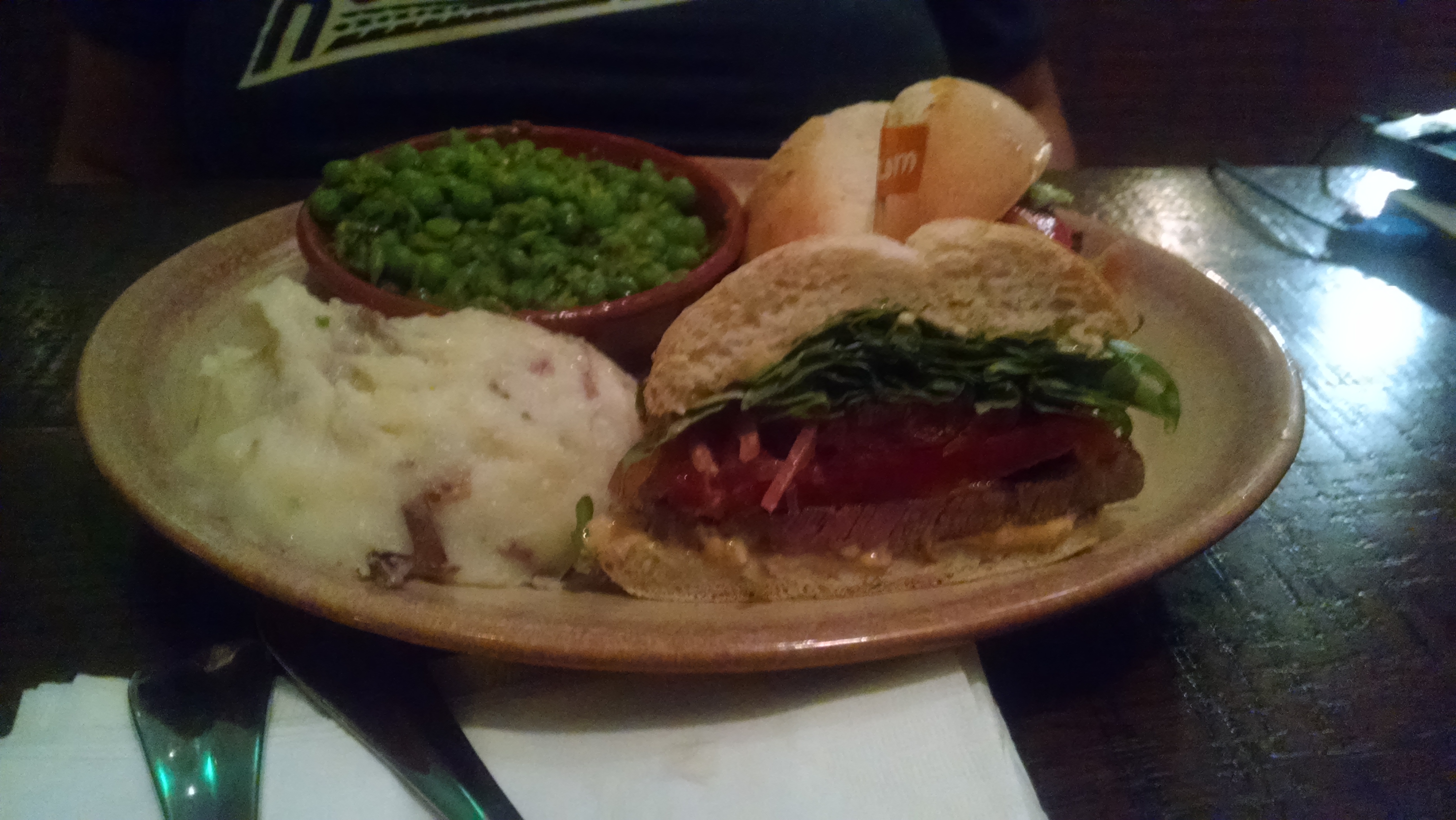 The Rib-eye Steak Sandwich ($13.75) had a surprisingly large amount of meat present. The sandwich was given further depth through the inclusion of arugula, pickled red onions and a good amount of Nando’s own mayo. Nando’s gives its patrons a number of different sides to choose from; PERi chips are lightly-seasoned fries, while the Portuguese rice has enough spice on it to make an entrée pop. Where I am not much a fan of peas, Nando’s macho peas were able to insert enough spice into a drab vegetable to make it into a must-eat. Rather than completely whipping their potatoes into a glue-like consistency, the red skin potatoes that Nando’s offers as a side have a good texture to them. The skin that is kept in the side creates a mouthfeel that is hard to beat.