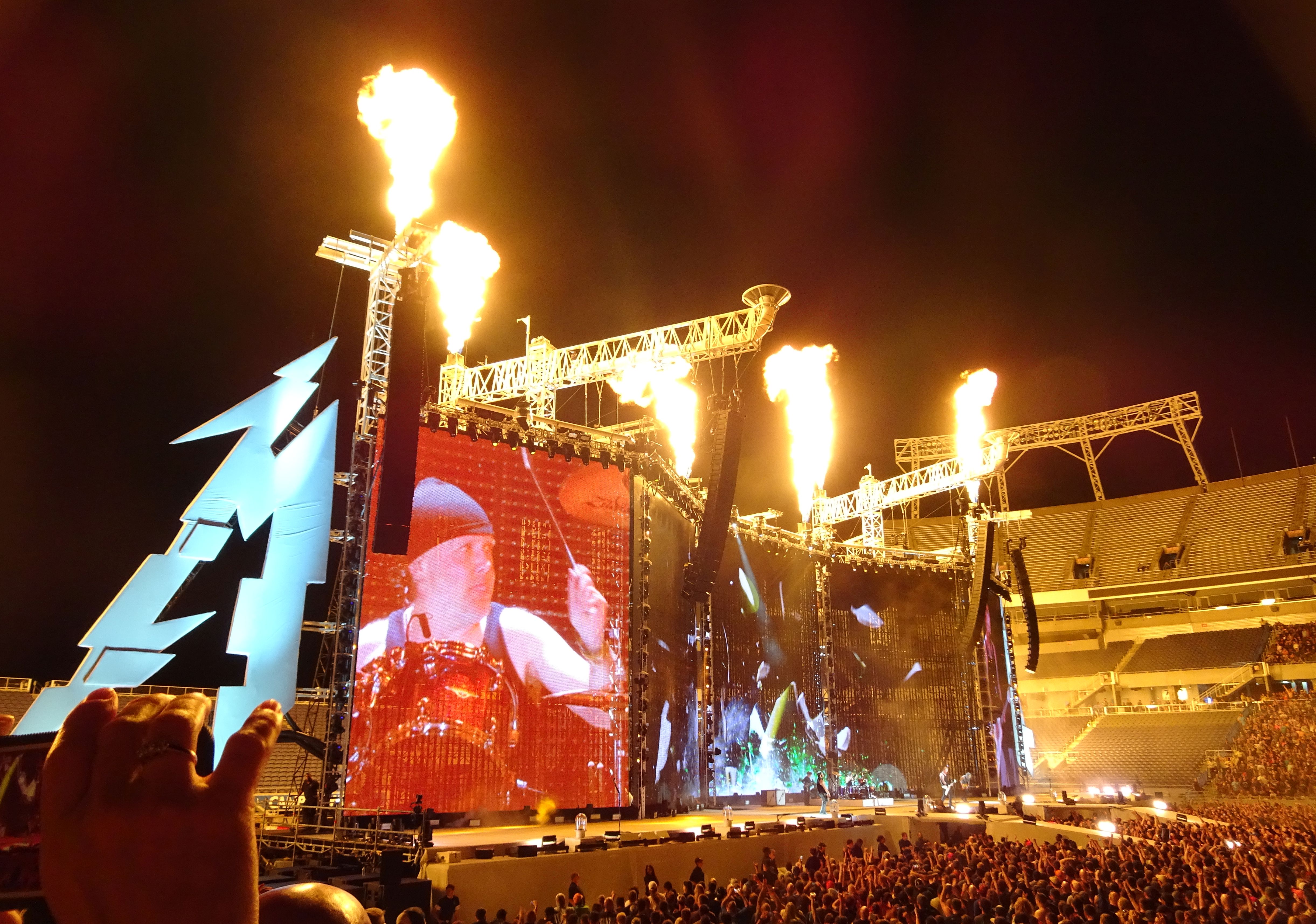 Metallica lit the Orlando sky afire with their mammoth stage production when they brought their “Hardwired…to Self-Destruct” tour to Camping World Stadium on July 5th. Four massive screens, seemingly a hundred foot tall, was the backdrop of a simple stage layout where the four metal horseman absolutely electrified a crowd of forty thousand plus with over two hours of pure in your face metal brilliance.