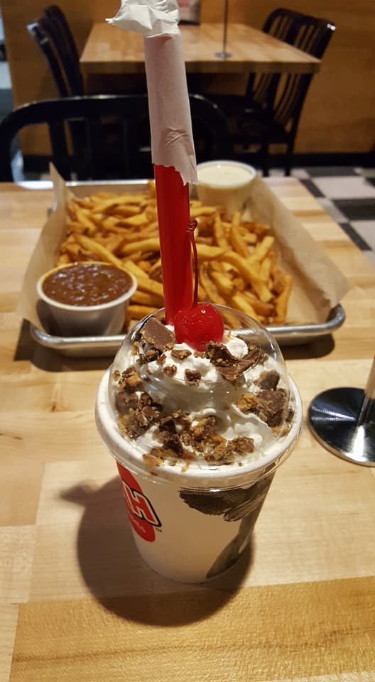 One of Mooyah’s shakes is the perfect way to end a meal and could easily be shared by a couple. The store offers a variety of mix-ins; we chose Reese’s peanut butter cups and cookie dough but the restaurant serves up additional variants (M&Ms, mint chocolate chip, and fruits including strawberry and banana).
